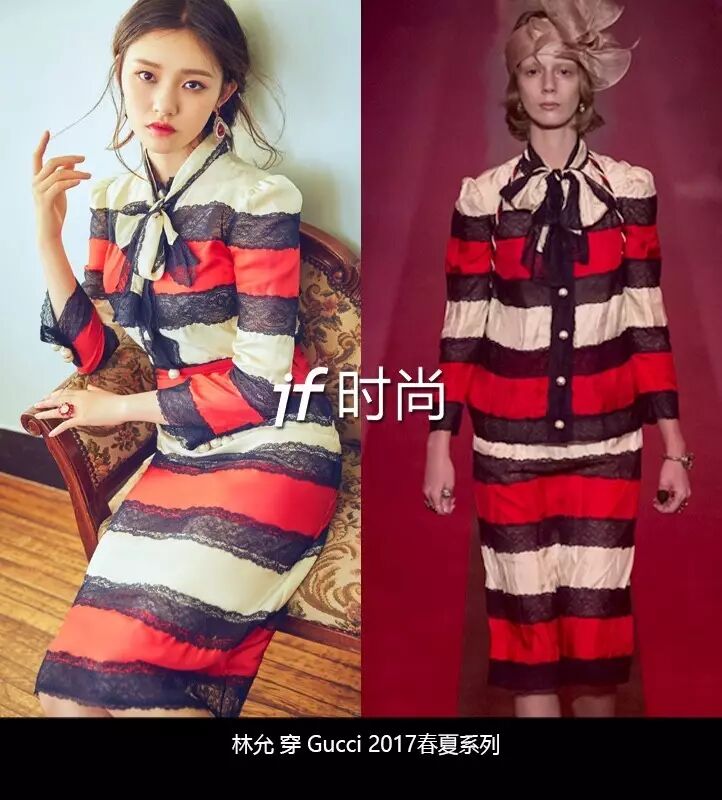 穿Gucci 2017春夏系列的裙装,眼神身段比模特的表现力还强,丝毫看不出蹲在路边吃零食的影子。
