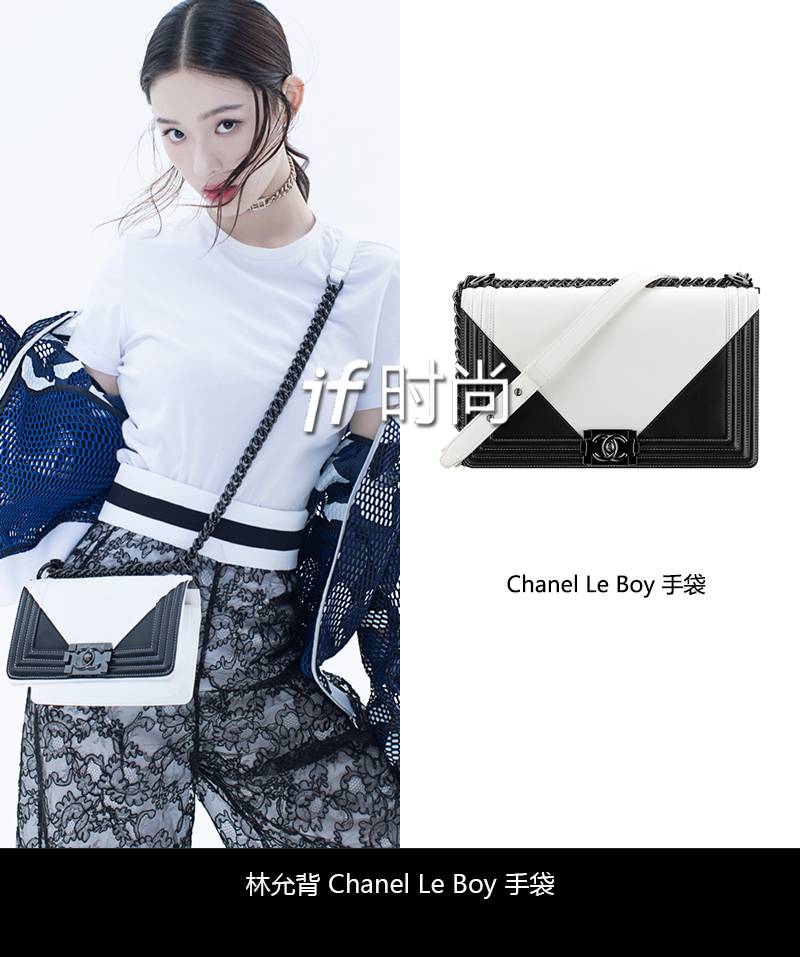有棱有角的Chanel Le Boy 生来就有一种男孩的帅气感,林允依旧是选择了通勤最适合最稳重的黑白色。但是,大面积的白显得为轻松,很适合初入职场的妹子。