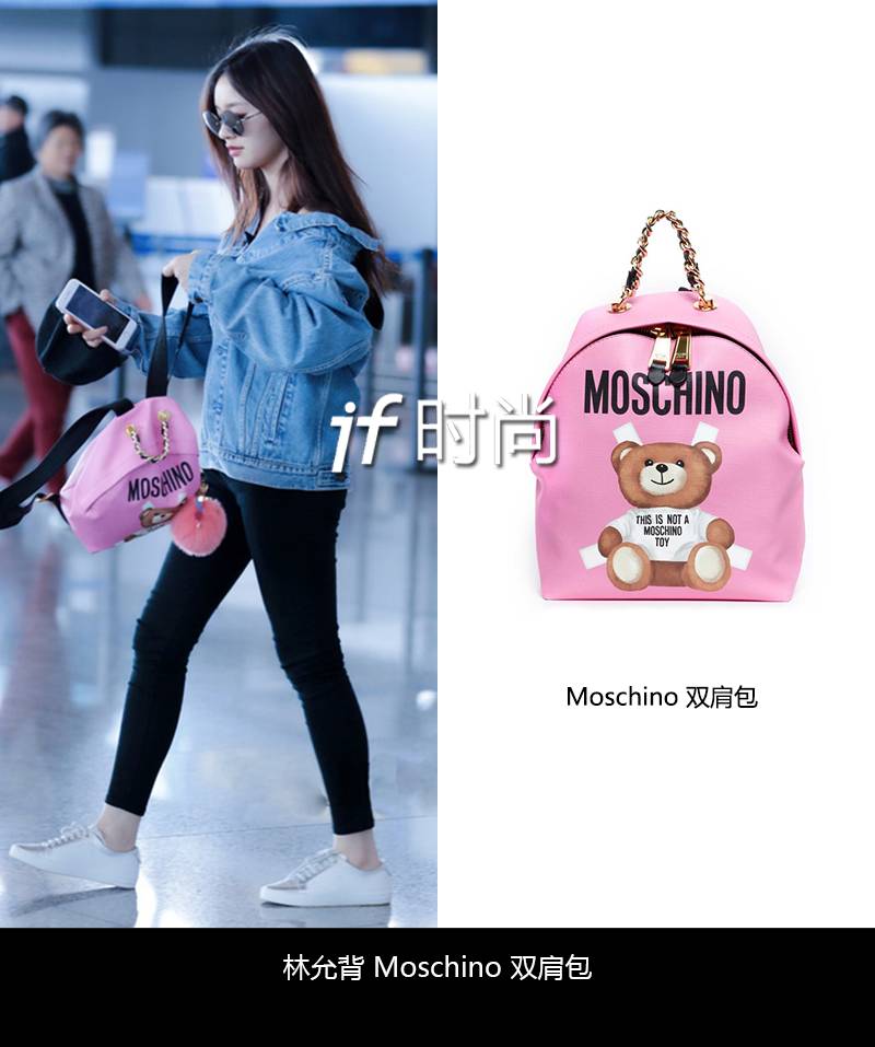 Moschino 的熊熊已然成为了标志性的卡通图案,很多女明星都爱穿Moschino 熊T,当然这么可爱粉嫩的粉熊包必须不能错过。