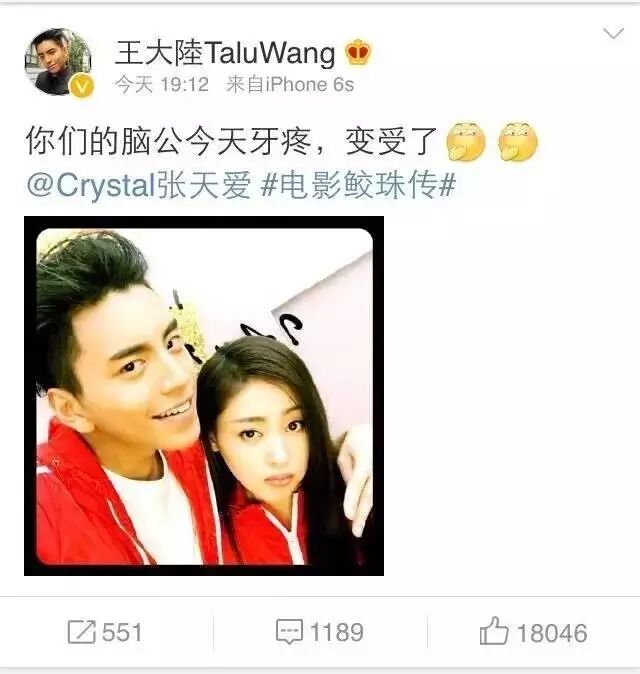 而王大陆和张天爱组成的“天地CP”也是话题多多,更被网友称为“黑白配”!