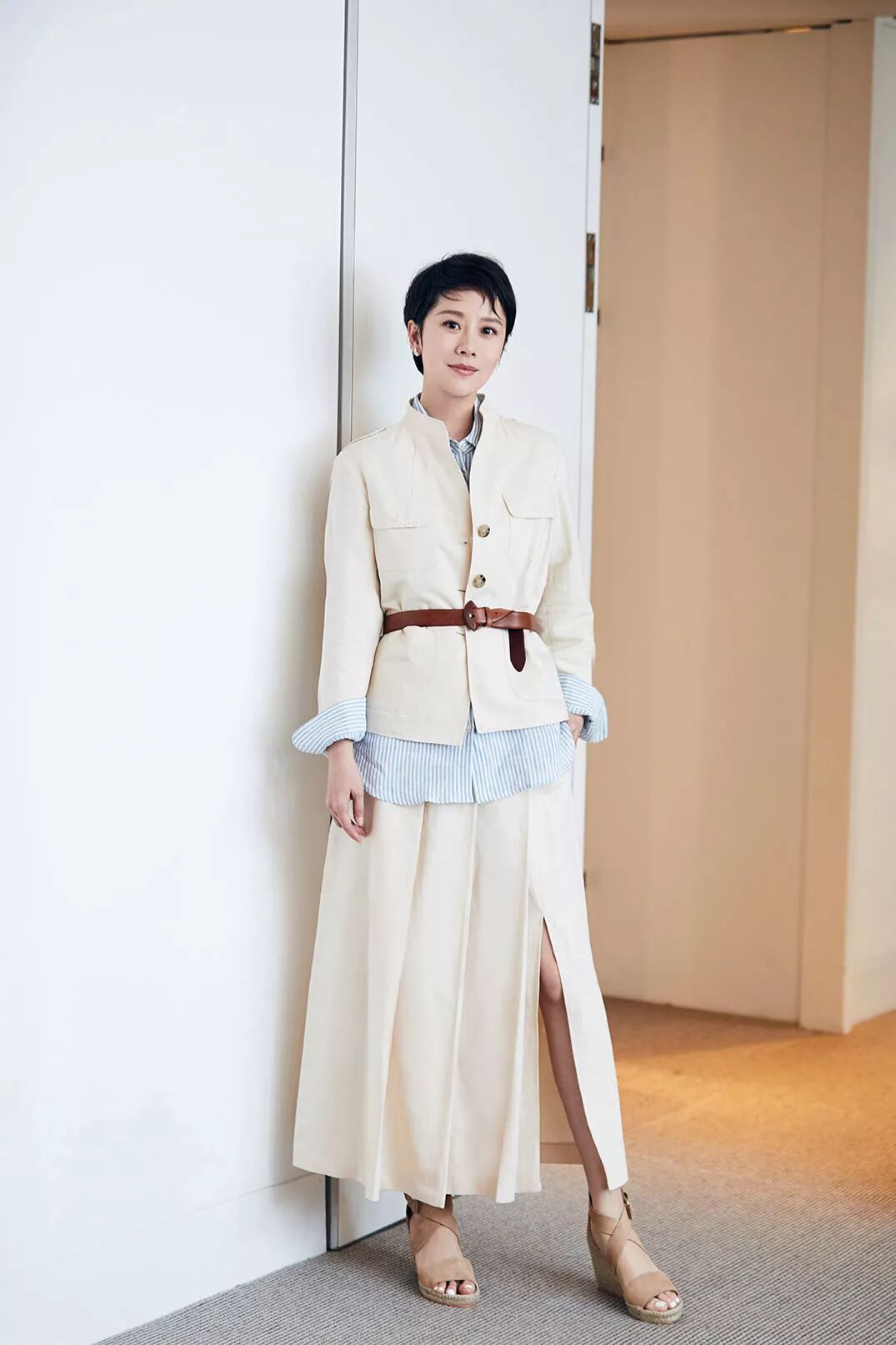 镜头前的海清,多了分知性,多了分优雅,无论是素净的白衬衫搭配蓝色印花长裙,还是简约的裸色半裙套装,或者洋溢着浪漫情怀的粉色条纹,穿在海清身上都显得格外温柔深情,就像散发着柔美的光,让人挪不开眼神。