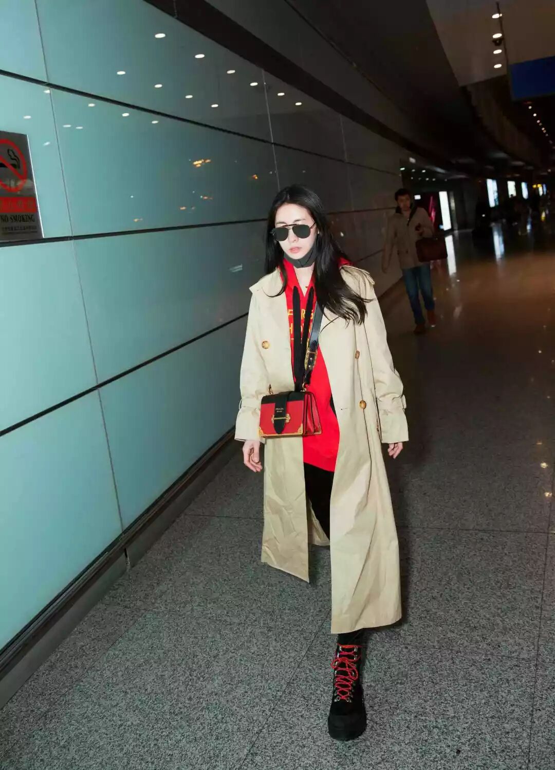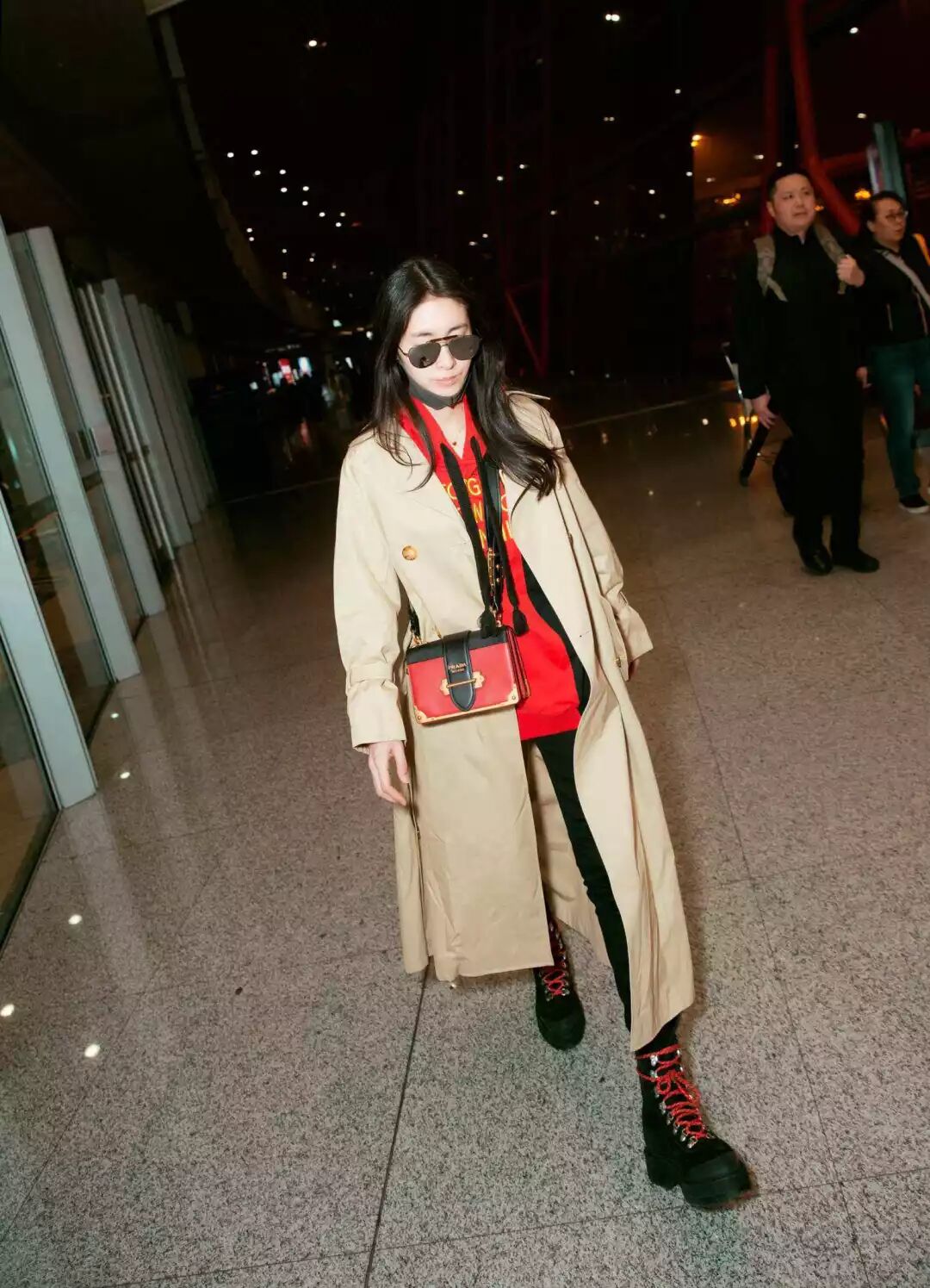 随意的机场照,一件帅气与优雅共存的Weekend Max Mara米色风衣,内搭红色卫衣和黑色紧身裤,妥妥穿出两米八的气场,拉风十足,平添三分铿锵之气。