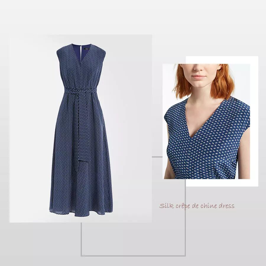 印花丝绸无袖连衣裙依然沿用了小眼睛的设计灵感,在整体造型上却大相径庭。深v领的设计平添几分性感意味,若隐若现之间露出洁白肌肤,一举一动都能够牵引路人的眼光。