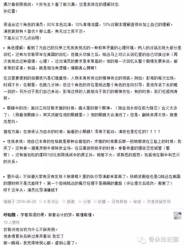 在评论中有不少人提到了孙红雷的演技,就在上周由孙红雷主演的电视剧《好先生》完美结局,各种不同的声音也络绎不绝。有的人说孙红雷的演技可圈可点,有的人说这不就是电视剧版的孙漂亮,更有人感叹还我“余则成”。