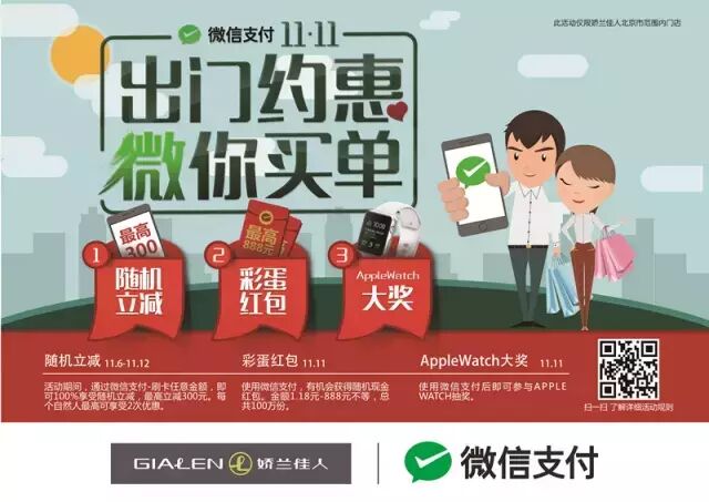【福利】双11出门约惠吧,小娇微你买单 娇兰佳人四川 日韩男星 2015-11-06 17:12:04 390 创作不易,用心坚持,欢迎请BaGua喝几杯爱心咖啡!打赏并支持本文 打赏并删除本文 双十一不容错过的优惠,娇兰佳人与微信支付带你“出门约惠 · 微你买单”!今天起—11月12日,四川、云南、西藏娇兰佳人门店开始新一期的微信支付随机立减,双11更是带你High翻天!不但可以最高立减300元,还有随机现金红包、AppleWatch抽奖机会等着你哦!单身节不寂寞,快约上身边的闺蜜出发吧!2015年11月6日—11月12日,在四川、云南、西藏的的娇兰佳人门店,通过微信支付-刷卡任意金额,即可100%享受随机立减优惠,立减金额最高立减300元。每个自然人人最高可享受2次优惠。(注:活动期间的所有合作商户共享优惠刷卡次数。)11月11日,在四川、云南、西藏的的娇兰佳人门店,使用微信支付,有机会获得随机现金红包。金额1.18元-888元不等,总共100万份。名额有限,发完即止。(注:获得红包的用户会收到"微信支付"公众号的信息推送,用户可点击领取,领取后可在零钱中查看。)11月11日,在四川、云南、西藏的的娇兰佳人门店,使用微信支付,有机会获得AppleWatch抽奖机会。(注:获得抽奖机会的用户会收到微信支付公众号的信息推送,用户可点击参与抽奖。)活动细则:1.活动期间:2015年11月6日-11月12日2.活动期间,用户在娇兰佳人四川、云南、西藏门店通过微信支付,刷卡任意金额,即可享受随即立减优惠,立减金额最高为300元。3.活动期间,每个自然人身份用户最高可享受2次优惠;同一微信号、同一手机号码、同一银行卡号、同一身份证号码、同一手机设备,符合其中一个条件者视为同一用户。4.享受优惠的订单若发生退货,相应的优惠根据退货总额同比例扣除。5.如用户对立减金额有异议的,可咨询【微信支付客服】。微信支付小娇支招:4步轻松搞定打开微信界面点击右下角[我]→进入[钱包]页面→点击[刷卡]→让收银员扫描界面完成付款。 创作不易,用心坚持,欢迎请BaGua喝几杯爱心咖啡!打赏并支持本文 打赏并删除本文 感谢您的支持鼓励,我会继续努力的!文章地址:用户邮箱:打赏金额:USDT 请输入数字点击”去打赏“,即可进行打赏支持本文章哦 小出惠介 About the Author 娇兰佳人四川 功能介绍:推广娇兰佳人品牌、增进公益事业! Related Posts 【福利】双11出门约惠吧,小娇微你买单 2015-11-06 17:12:04 发表评论