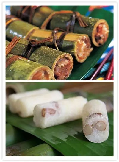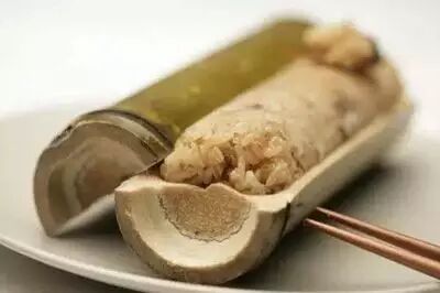 又称竹筒饭,吃时捶打竹筒使之变软,竹筒内壁的竹膜便贴在饭上,用力一剖两半,香竹饭便脱竹而出,香气浓郁,饭软而细腻绷。