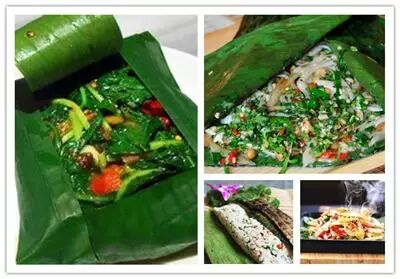 说巧媳妇难为无米之炊,可布朗族人在野外劳动时没有锅灶的情况下,也能想出办法做饭,布朗族历史上深居丛林,缺衣少食而养成了以清煮为主德烹饪方法,为了节省碗筷,他们曾经把一片片芭蕉叶作为盛饭盛菜的容器,用手抓着吃,真把就地取材做到了极致。
