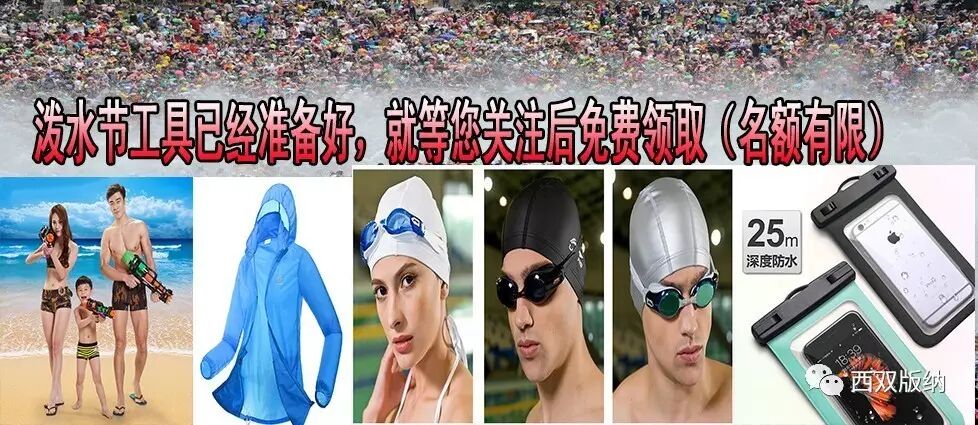 >>>>泼水节,即是傣族的“过年”,亦称“浴佛节”、“宋干节”;是傣族以及泰族最为盛大的传统节日。当日清早起来便沐浴礼佛,之后便开始连续几日的庆祝活动,期间,大家用纯净的清水相互泼洒,代表着清除所有的邪恶、不幸和罪恶,祈求洗去过去一年的不顺,并怀着一切美好和纯净开始新的一年。世界上有了水,万物才能生长,水是生命之神。