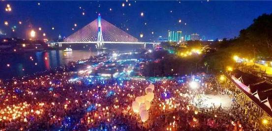 在肃穆的大金塔下见证万盏绚烂孔明灯放飞