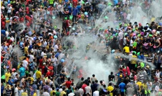 7、【警告】禁止出现泼热水的情况。另外,玩气球水袋的朋友千万别往别人头上砸,用高压水枪的也不要对着脸部和眼睛激射。