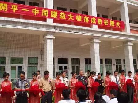 周谦益,开平市百合镇茅岗人,江门市和开平市荣誉市民、旅美侨领,开平一中的名誉校长。早年毕业于中山大学,41年参加过抗战,后来移居美国,亦不忘家乡热衷慈善事业,他先后捐建“周谦益大楼”及“周瑞澜纪念大楼”,与妻子联名多次捐款,是开平赫赫有名的慈善家。