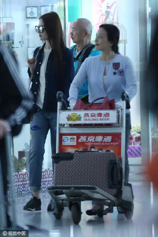 2016年4月18日,北京,刘亦菲与母亲同赴香港。 图片来源:视觉中国