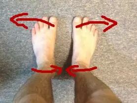 首先,光脚站在平地上,双脚与肩同宽,双脚角度应该略外八字,具体多少取决于你的盆骨。闭上眼睛,把注意力放到你的双脚。你的重心应该在脚掌中央,略靠近足弓,而你要感觉到你身体的重量均匀分布在整个脚掌。这就是武侠小说里说的“力从地起”,说的就是你站立时身体重量的均匀分布。如果你找不到门路,试着在地上把两脚尖往外转,使你的脚和地产生一点静态摩擦力,如图。