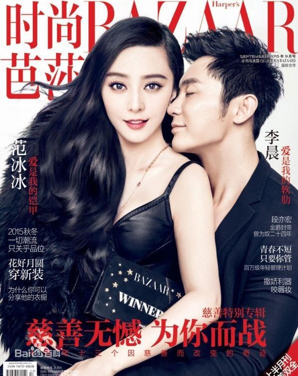2015年9月,李晨、范冰冰首次合体上芭莎封面,这也算是李晨表现最好的一次,大概是只露个侧脸,不用做太多的表情动作,最终作品也能看出两人的甜蜜感。