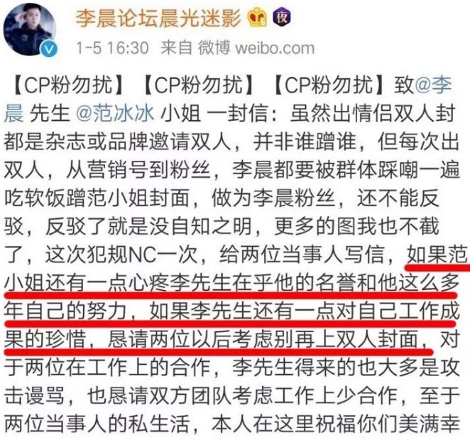 忍无可忍的李晨影迷后援会只能写信给范冰冰和李晨,不但请求两个人以后别再合拍杂志封面,还请求双方团队尽量少合作。