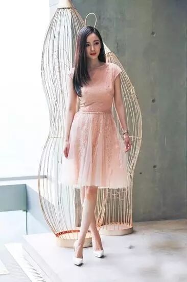 这条粉色纱裙清丽脱俗跟杨幂的甜美简直配一脸