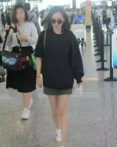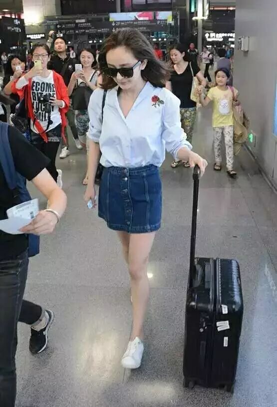 机场街拍也是丸子头搭配刺绣夹克清爽又帅气