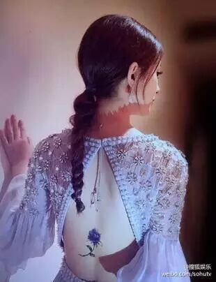 日前,赵丽颖出席2016年白玉兰颁奖典礼时,一袭露背礼服引来不少网友围观,她背部的紫色花朵纹身更是成为了全场的焦点。