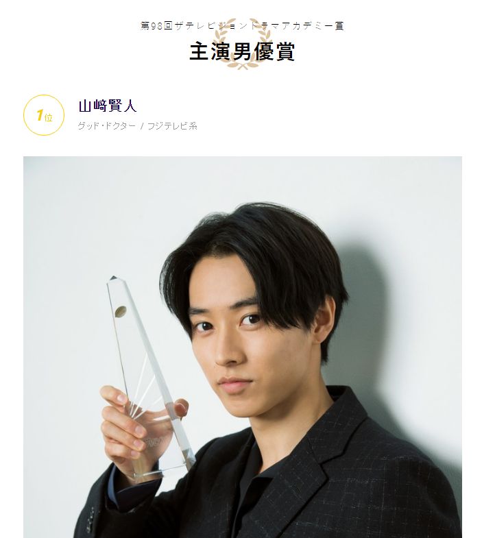 山崎贤人在《Good Doctor》中饰演的患有自闭症的医生,也受到了好评,获得了最佳男主角奖。