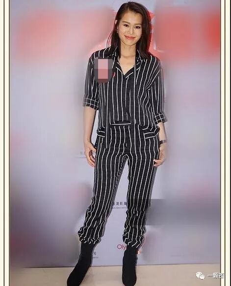 不过穿着这样一身简单的黑白条纹设计的衣服的胡杏儿看起来还是十分的大气的,简洁利落的条纹设计给人几分潇洒大气的感觉,让人可以在一定程度上忽视她的身材。