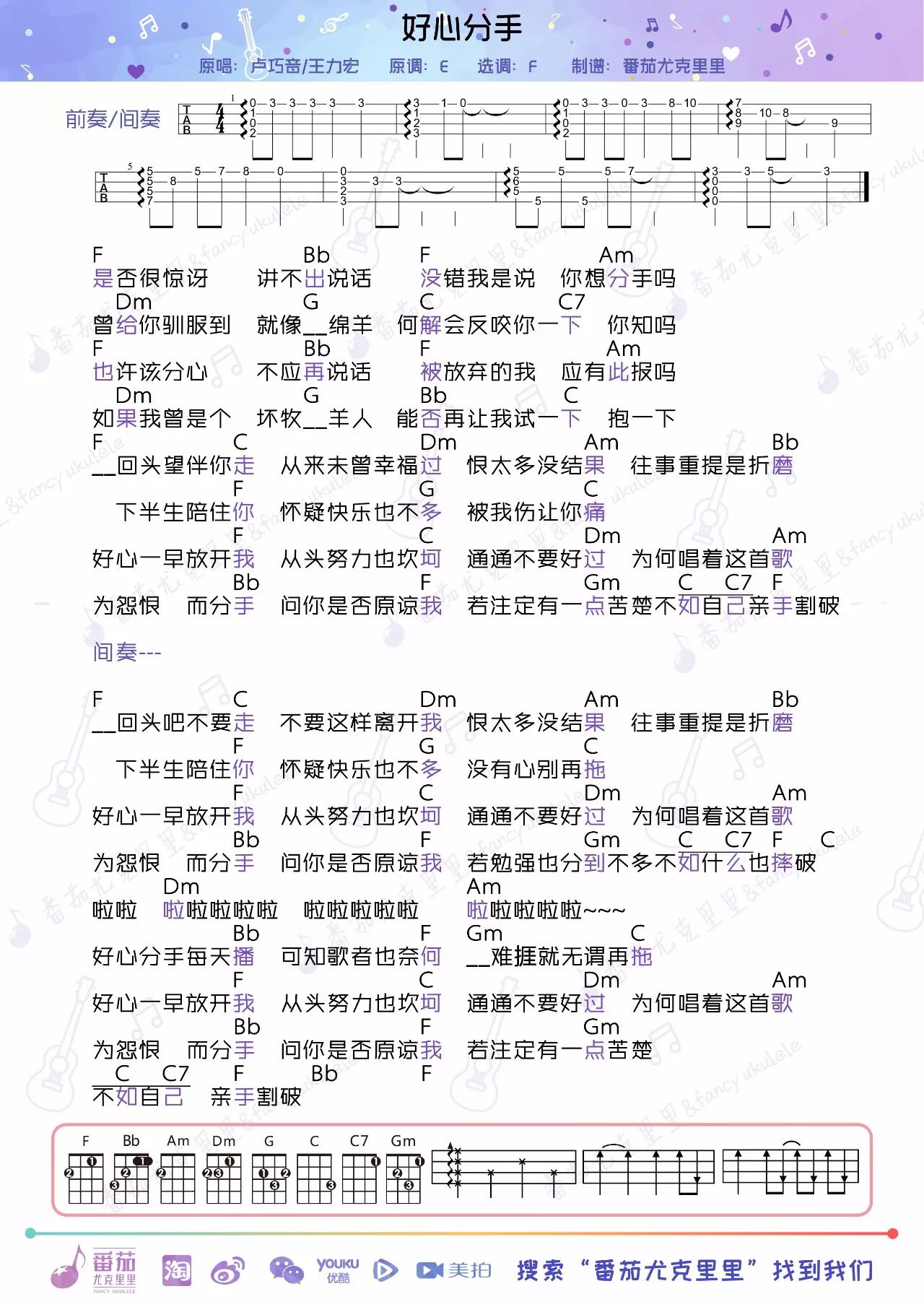 《好心分手》收录于香港女歌手卢巧音的第八张个人专辑《赏味人间》,发行于2002年7月1日。由黄伟文(Wyman Wong)作词,雷颂德(Mark Lui)作曲。与王力宏的国粤语合唱版收录在赏味人间中。