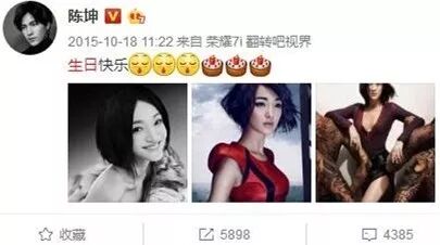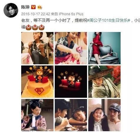 前天是周迅生日,老公高圣远没有做到的零点送祝福,陈坤做到了↓