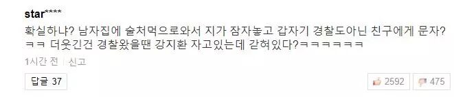 1.确定了吗?到男人家里喝酒,自己睡下了,突然给朋友,还不是警察发短信?kk 更好笑的是,警察来的时候,姜至奂正在睡觉,还说被关了起来?kkkkk