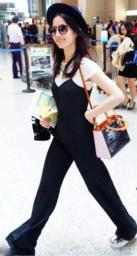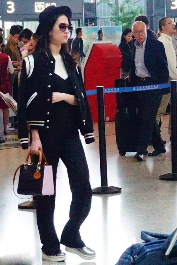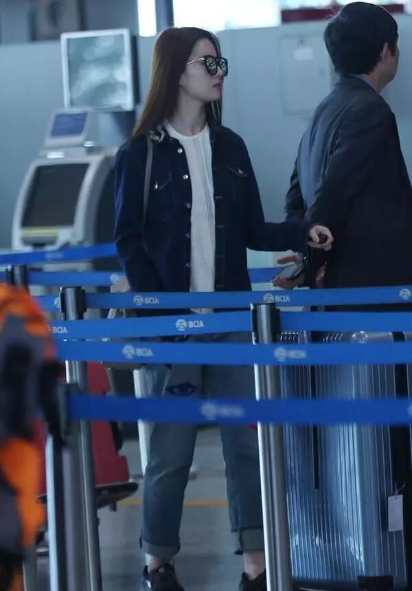 刘亦菲身穿一套牛仔装抵达香港,简单时髦青春气息十足。