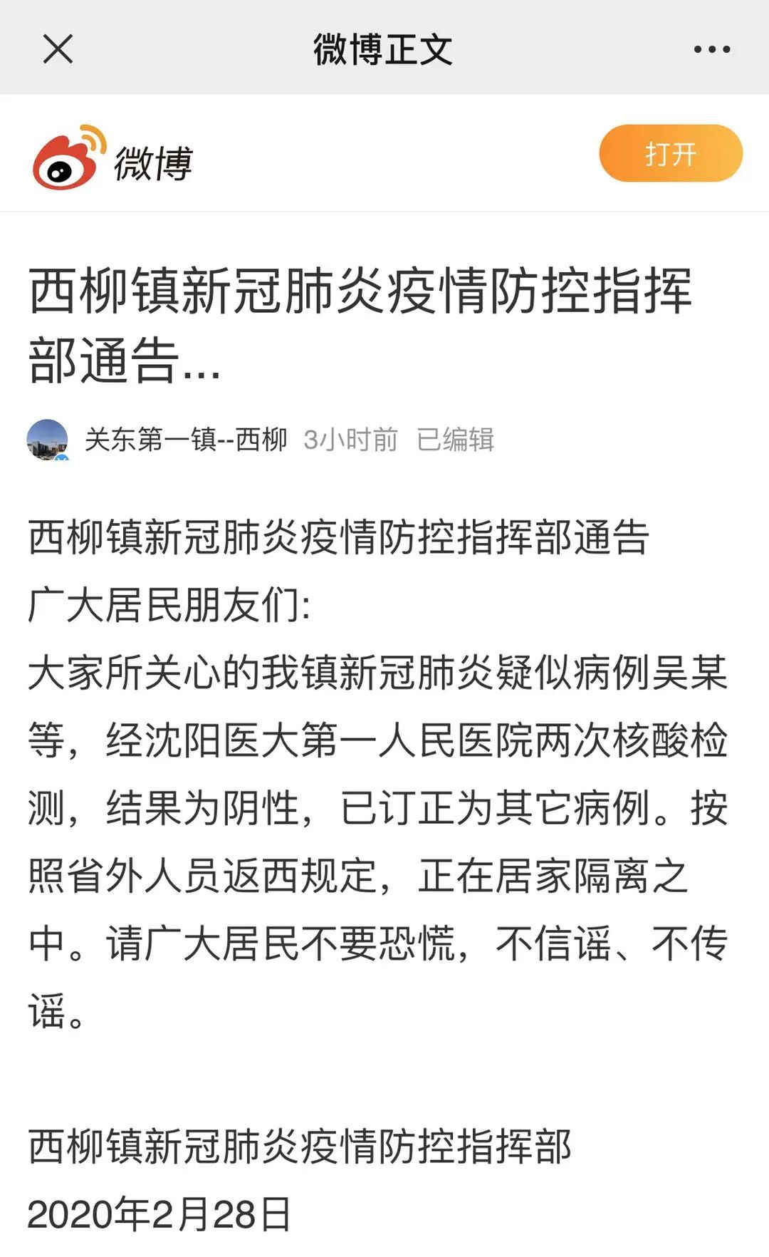 关于海城西柳镇“美馨庄园吴某”最新核酸检测出来了! 海城焦点 日韩男星 2020-02-29 16:50:45 315 创作不易,用心坚持,欢迎请BaGua喝几杯爱心咖啡!打赏并支持本文 打赏并删除本文 点击:大事件!关系海城每个人的生活图片来源微博:关东第一镇--西柳目前,备受微友广泛关注的西柳镇“美馨庄园吴某”今天经沈阳医大第一人民医院经两次核酸检测,结果为阴性,已订正为其他病例。按照省外人员返西规定,正居家隔离之中。请海城小伙伴不要恐慌,不信谣,不传谣。璐璐提醒海城的各位小伙伴不要传播来源不详或未经官方证实、发布的“小道消息”,避免引起不必要的恐慌。来源:海城市教育点击下方卡片,免费进入海城人自己的便民平台 创作不易,用心坚持,欢迎请BaGua喝几杯爱心咖啡!打赏并支持本文 打赏并删除本文 感谢您的支持鼓励,我会继续努力的!文章地址:用户邮箱:打赏金额:USDT 请输入数字点击”去打赏“,即可进行打赏支持本文章哦 柳镇 About the Author 海城焦点 功能介绍:用心与您分享海城全新视角,打造关爱互助的精神家园。做城市的风向标,做您生活的一部分。海城最大的便民信息服务平台!海城焦点-值得关注! Related Posts 关于海城西柳镇“美馨庄园吴某”最新核酸检测出来了! 2020-02-29 16:50:45 发表评论
