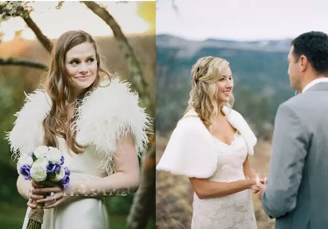 有些新娘会想举行一场雪地婚礼,可是要在冰天雪地里穿一整天婚纱,想想也是美丽冻人。设计师设计了适合冬季穿的婚纱披肩,纯白色毛茸茸的小披风也为新娘增色不少!