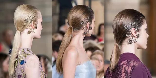 简洁的马尾是搭配奢华感Ear Cuff的最佳发型,小编竟然神奇地发现,无论你是什么发色,长发还是短发,轻轻地绑一个低马尾再加上Ear Cuff都是既低调又华美的美娇娘形象,和浪漫兼得!