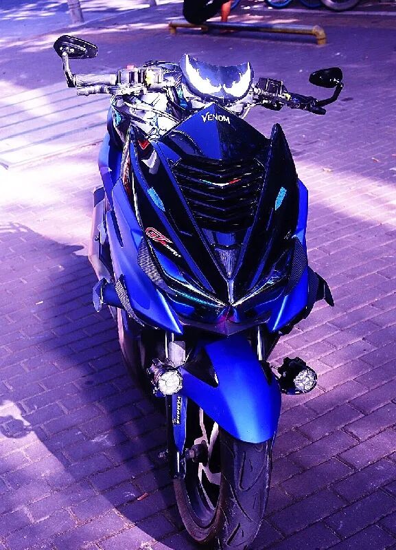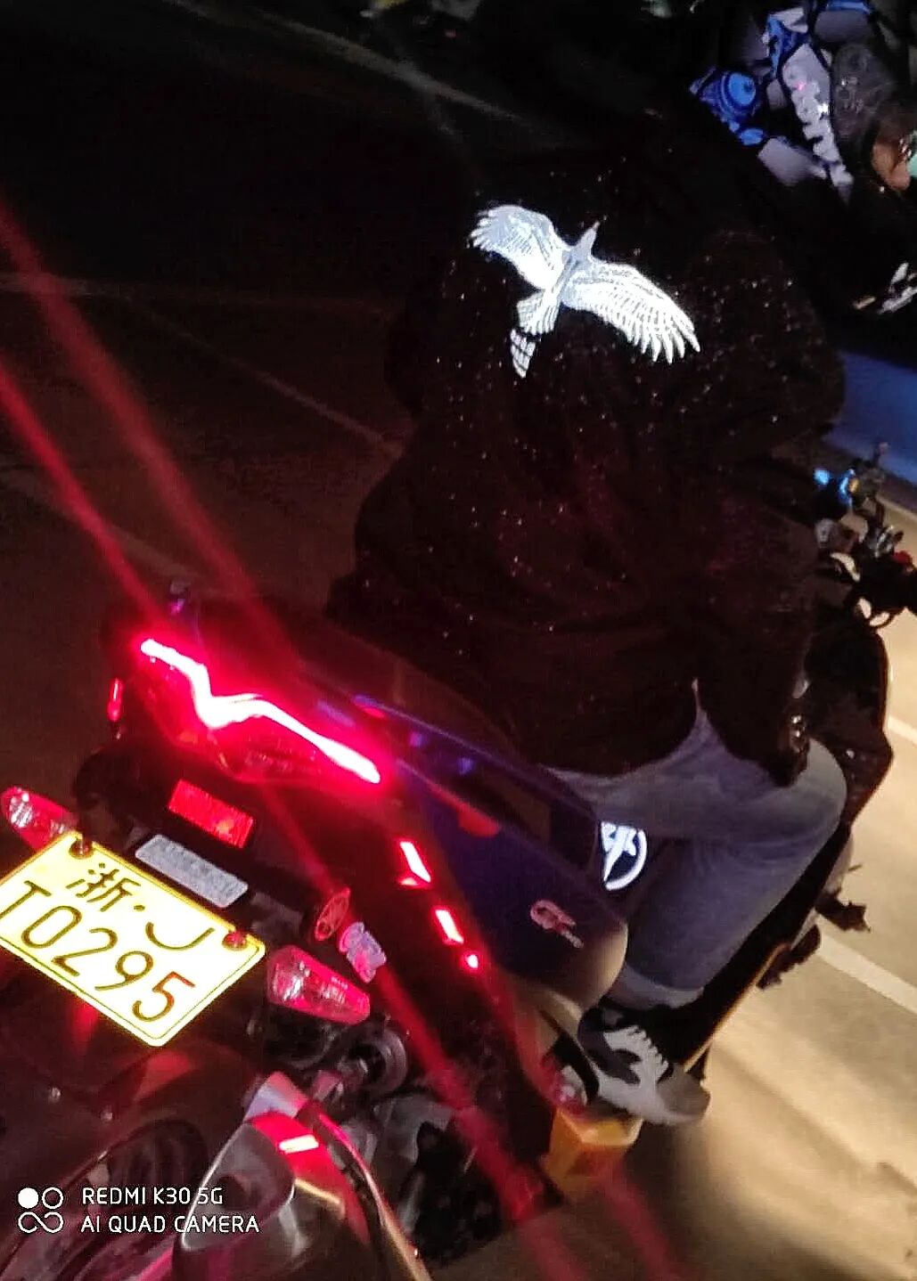 车头我加了一对汽车风刀,不仅帅气更符合空气力学,高速行驶可以使车紧紧的贴 在地面更能提高速度。尾灯改的是一套海鸥尾灯,自带LED转向灯,潮流时尚;刹车换的是一对专用牛角,颜值杠杠的,飞碟盘也换了,目前表头百公里提速能跑到9秒(改了碟盘),起步也一点不输一些大排车。