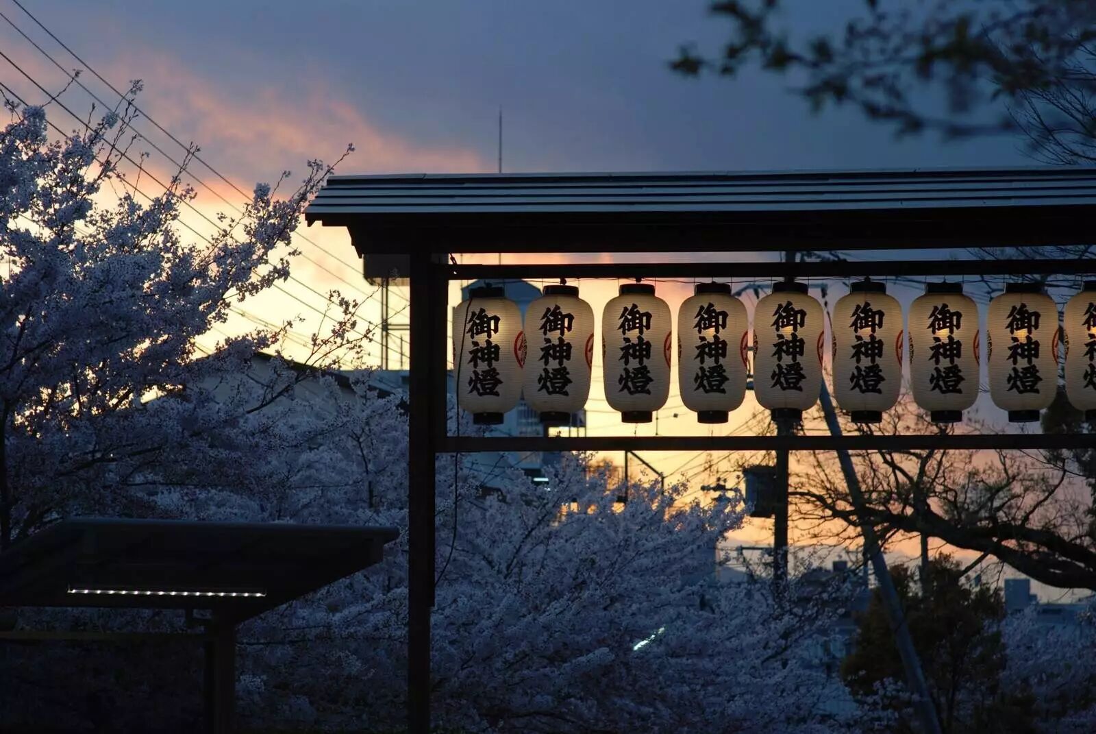 晚樱在空中翩跹,斜倚在榻榻米上,门外灯火初上,有种静谧的美。