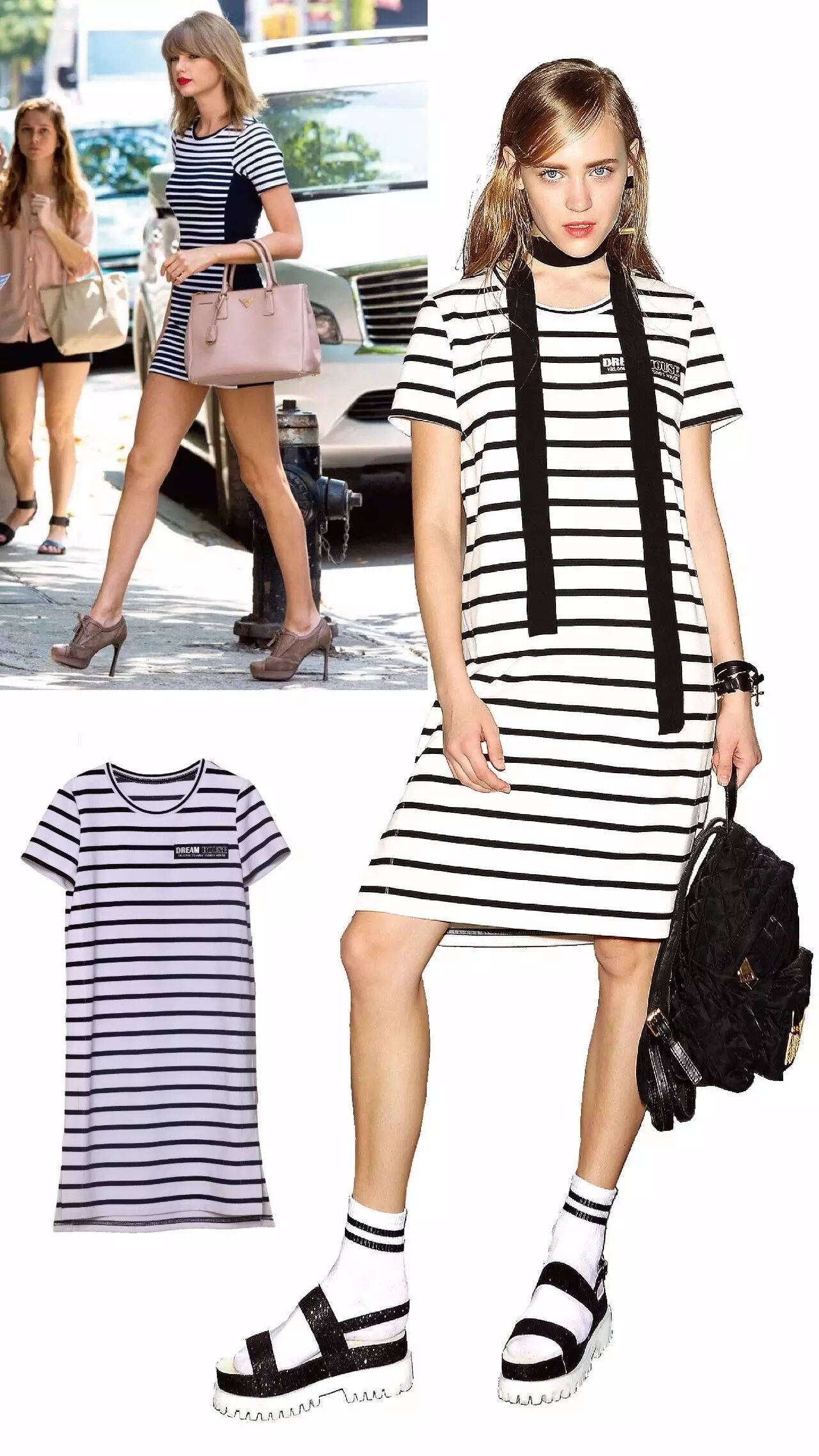 霉霉还尤其爱穿条纹,清爽,干净。这位曾经到死都穿不对星人,如今竟然这么时髦又轻盈了。