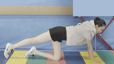 ① 双手伏地,与肩同宽。全身挺直,慢慢抬起一条腿,再慢慢落下。