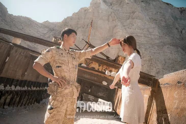 最近COSMO办公室谈论最多的话题是什么?买什么衣服?时装周?买了什么包?!NONONO!是宋仲基欧巴!因为《太阳的后裔》实在是太火,以至于更新一集那一集就成为微博热搜前三,简直是全民在追《太阳的后裔》啊!不管是颜值还是剧情,简直成为韩剧史上的又一巅峰!35岁的宋慧乔和31岁的宋仲基,这对高颜值CP组合,简直不知道让多少粉丝为之倾倒,乔妹在剧中清新的妆容和简单的穿衣风格,再一次引领了韩剧女主穿衣风格的又一高潮!