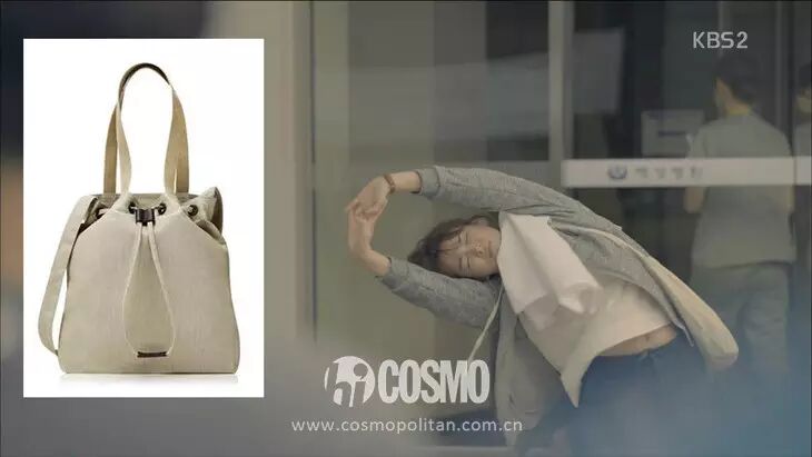 做完手术之后的姜医生,轻松的卫衣外套搭配运动裤和简约背包,这只包包应该就是韩国本土品牌J.estina的这款,一个抽带设计,非常简单休闲。