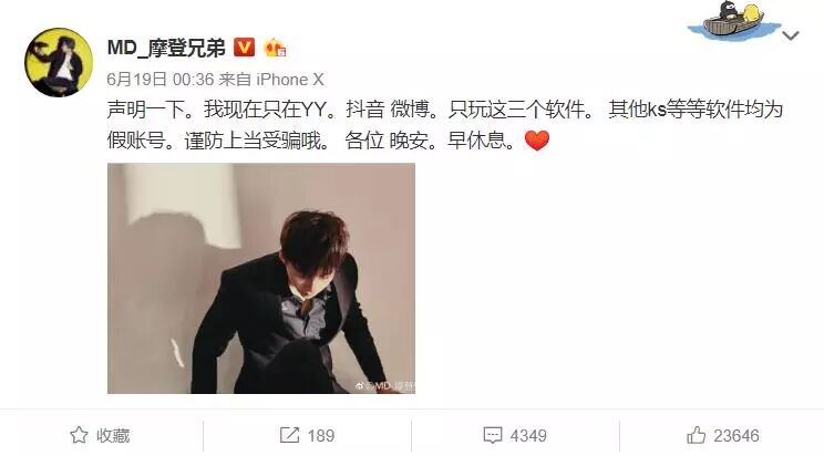 在抖音上火了之后也没离开YY,有时会在抖音上给自己的yy直播作预告。有细心的网友算过刘宇宁在YY平台上的直播时间,差不多有8年了,也是很久了。