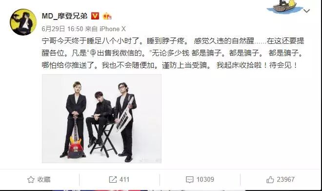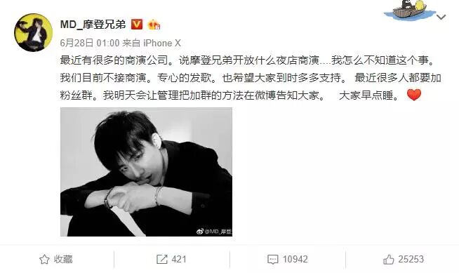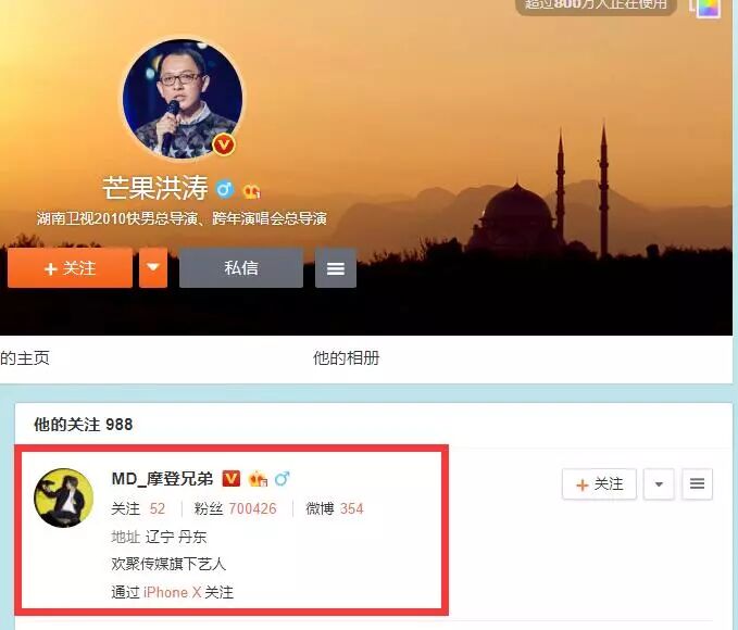 湖南卫视《我是歌手》的总导演洪涛昨天微博关注了摩登兄弟,并且这条关注还上了微博热搜榜,不禁让人疑思,摩登兄弟这是要准备参加《我是歌手》了吗?