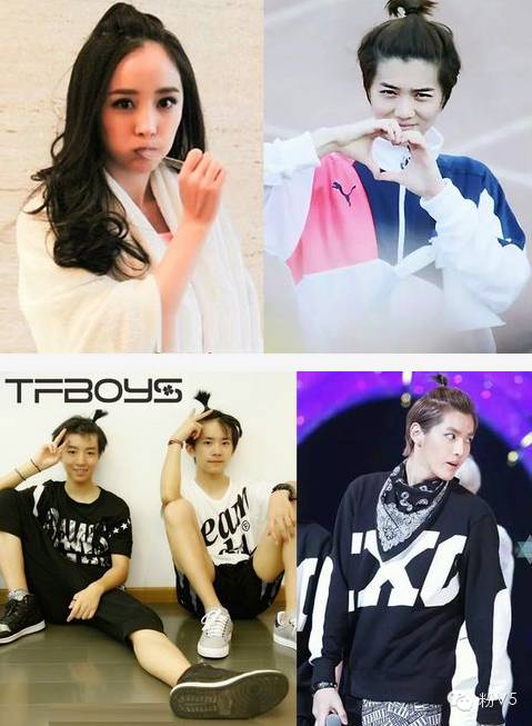 据说苹果头是杨幂的最爱,已经出现过 N 多场合,但岂不知苹果头也有很多男星的追随者,比如:由曹格、邓超、吴镇宇组成的爸爸团,TFBOYS、鹿晗、吴亦凡组成的男神团都玩过。那么这个苹果头到底是个什么鬼?我们来聊聊。其实苹果头就是在刘海的分界处挑一束头发扎成小发髻。这样不仅能够缓解刘海碍眼挡脸的尴尬,还显可爱有活力。