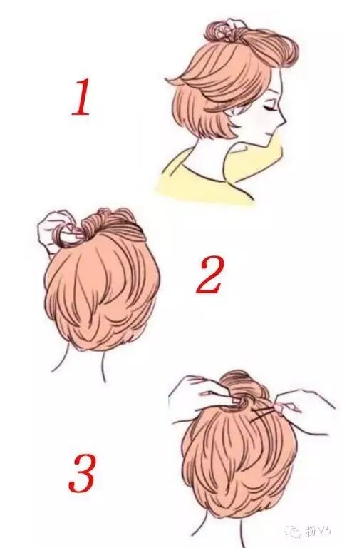 (1、在刘海分界处,抓起头顶部分横竖 5-10cm 范围内的头发(这一点是区别丸子头、半丸子和苹果头重要依据),然后可根据个人喜好往右侧或左侧抓起。