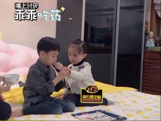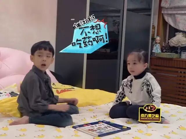 节目中,王子和妹妹艾米正沉浸在逻辑狗带来的思维魔力世界,却被妈妈曹颖呼唤吃药,顿时一脸的不乐意。