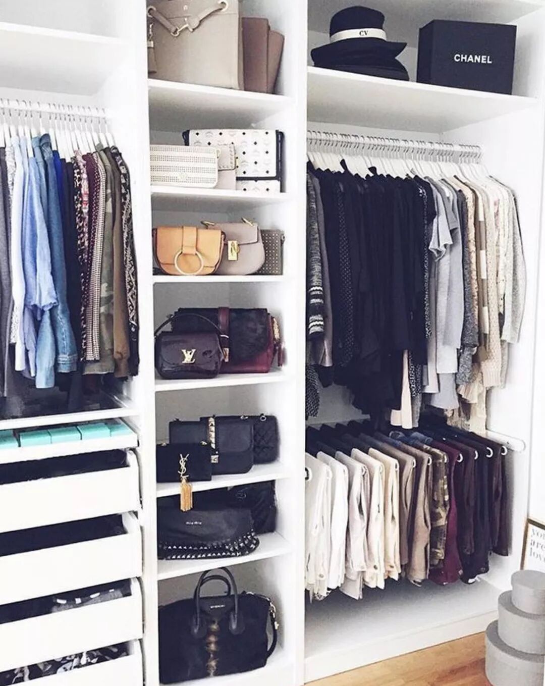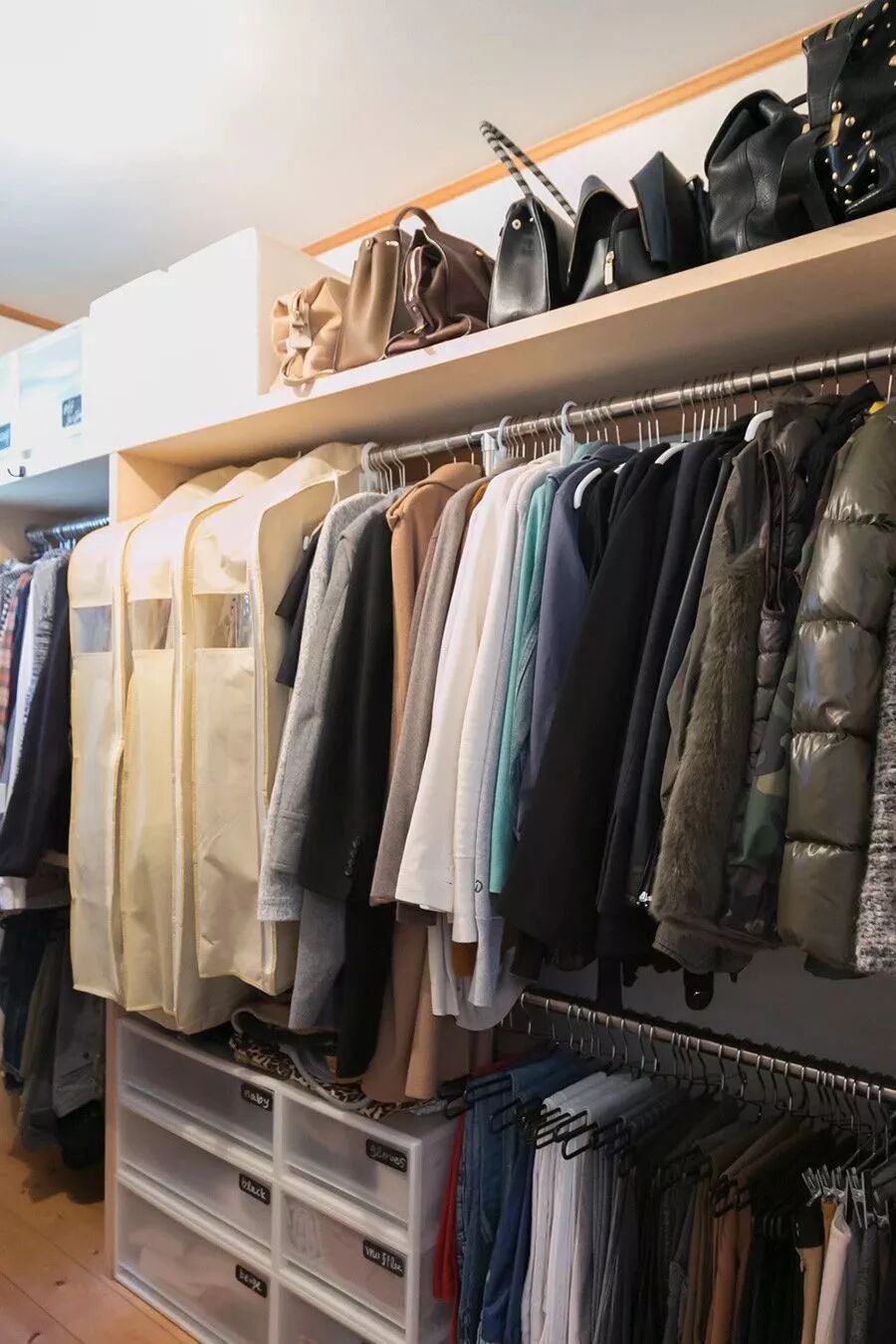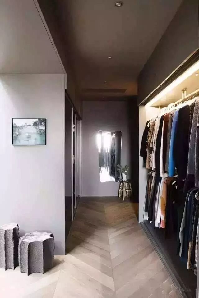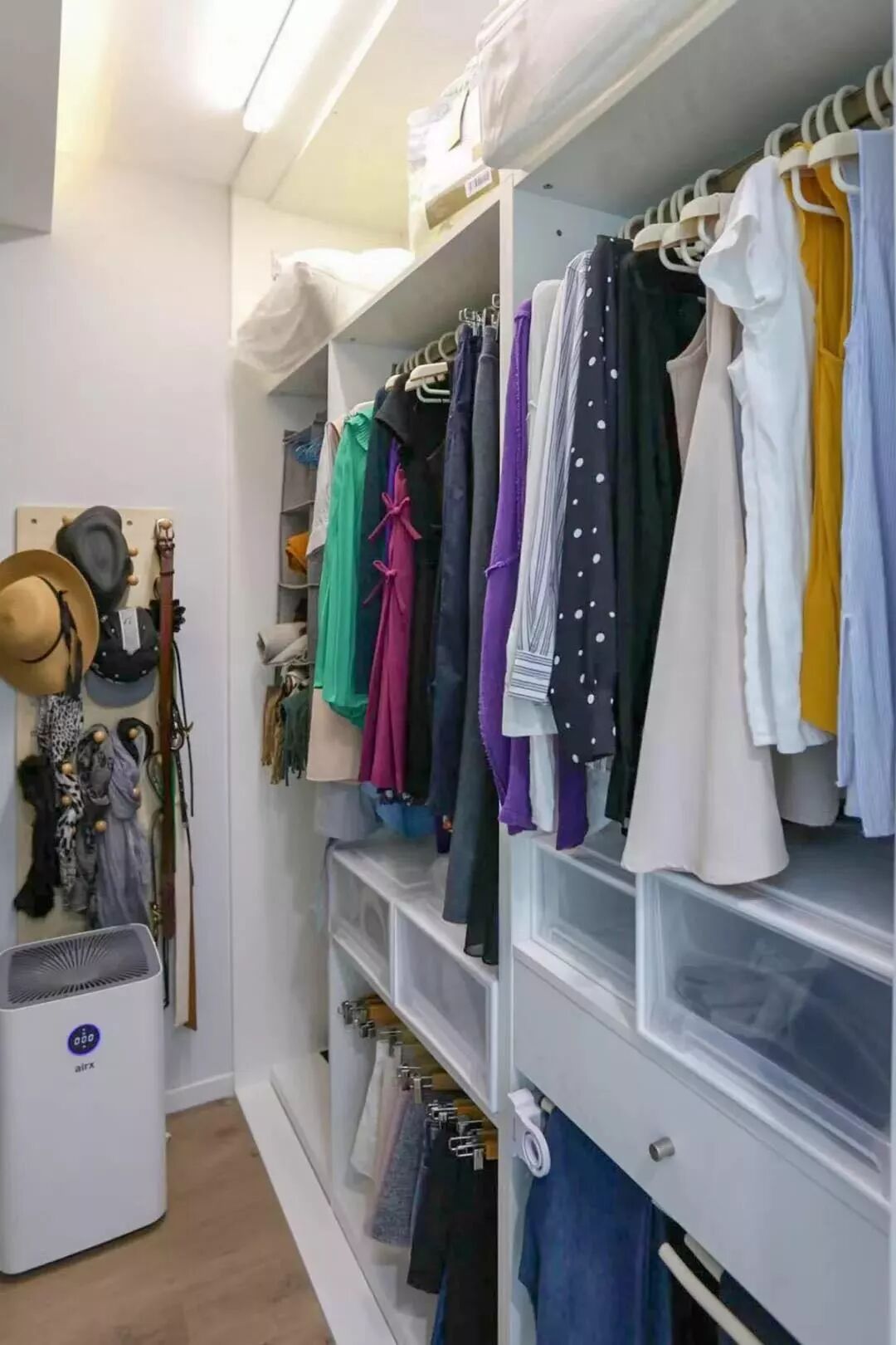 2.衣帽间需要重新规划格局,悬挂区挂常穿的外套和Tshirt,折叠区竖放贴身衣物。