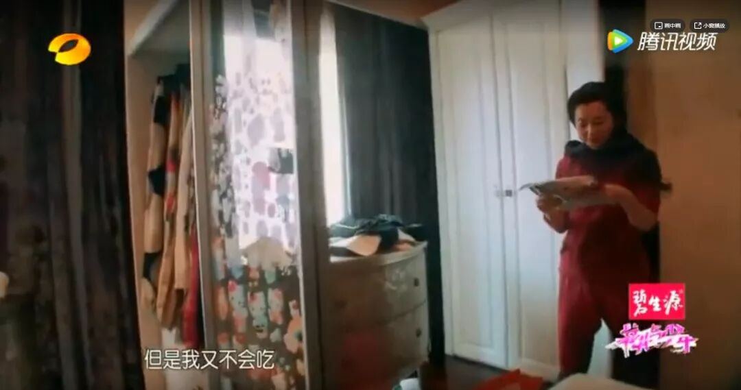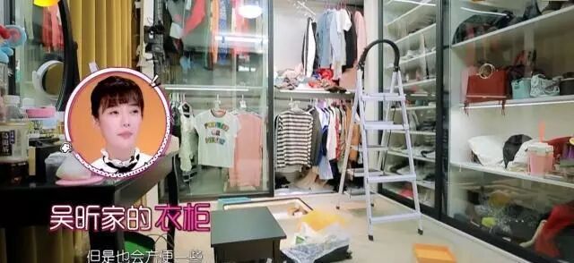 2.许晴家衣帽间的门是难得的对开门,复古也很占地方。尤其是拐角处,想拿拐角处的衣服,就拿不了旁边衣柜里衣服。