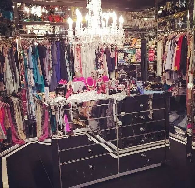 2.以希尔顿这种高调的性格,衣帽间的柜子和墙壁当然要镜面体。灯光从镜面体反射出来,整个衣帽间充斥着“我很有钱”的暴发户式张扬。