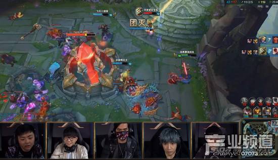 10分03秒,奎因来到下路支援,成功拿到三杀。