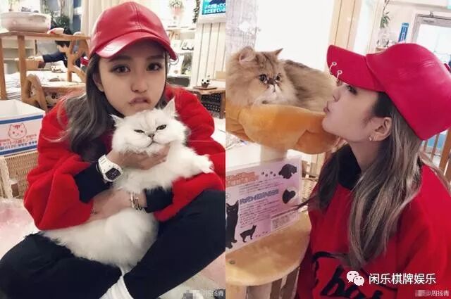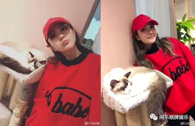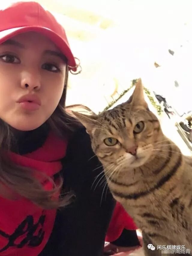 照片中周扬青头戴红色帽子,身着红色卫衣搂着不同品种的猫猫大玩自拍,心情美美的她还不时嘟嘴卖萌,简直就是妥妥的美少女一枚。