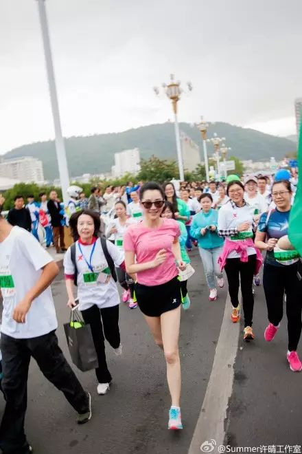 近日47岁的许晴和孙楠、苏运莹等人在三亚参加马拉松。