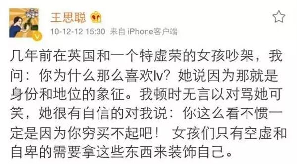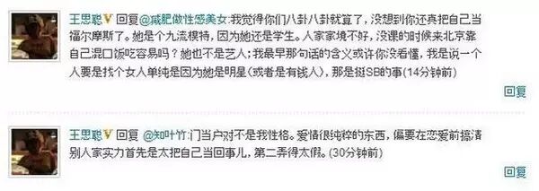 还有网友跑到王思聪微博下面求证这段恋情,年少轻狂的王思聪那叫一个有担当啊,不仅力挺王倩,还为女友说尽了好话,大谈特谈自己不在乎什么‘门当户对’。