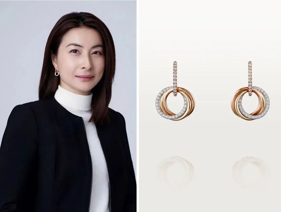 郭晶晶算是卡地亚的“真爱粉”,戴过不少卡地亚单品。比如这套Trinity系列耳环、Cartier d‘Amour系列项链,以及Baignoire系列腕表,简洁经典。